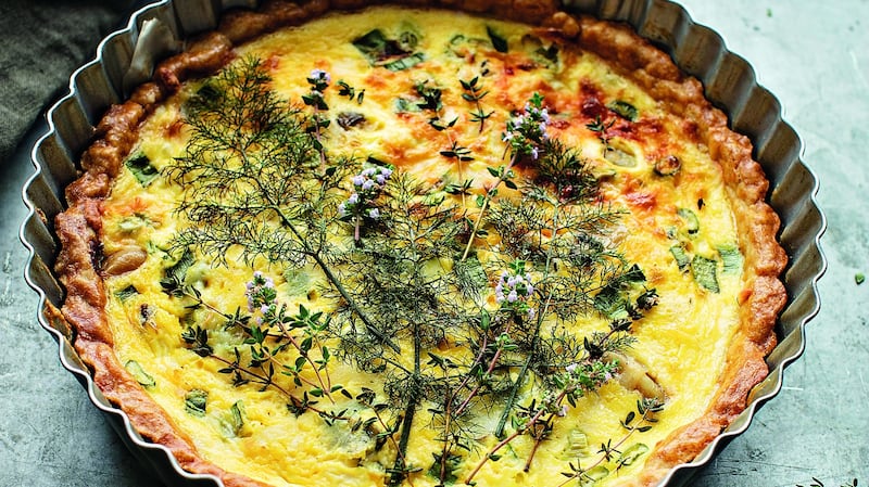 Bake in the oven for 35 to 40 minutes until the custard is just set but still has a little wobble in the middle. Decorate with the remaining thyme flowers and fennel fronds and serve warm or at room temperature.