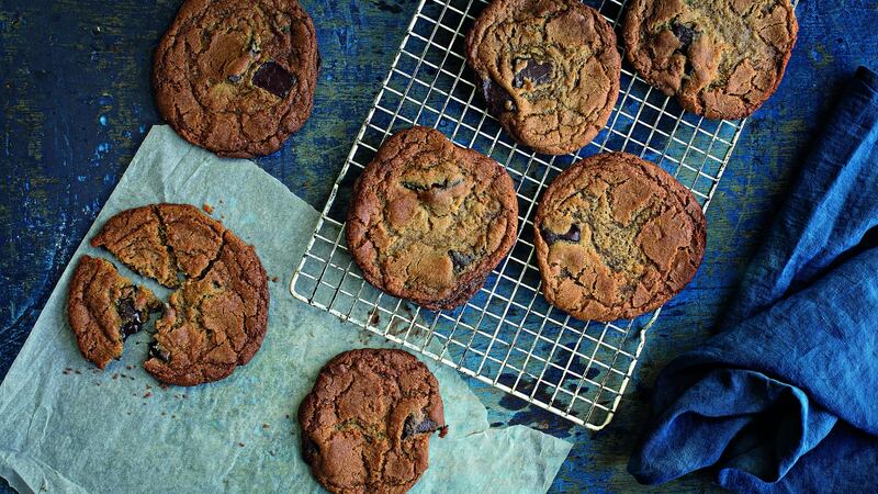 This recipe, based on the New York Times 48-hour cookie, is the closest thing I have found to that heavenly specimen. You can wait anything between 24 to 48 hours to bake these – the longer you wait, the richer and more caramelised the cookie will taste. My personal preference is somewhere around the 36-hour mark. Don't substitute chocolate chips here, you want good-quality chocolate broken into chunks, at least thumbnail size. This will affect the taste but also the texture of your cookie. These cookies can be frozen once they've had their waiting time – just defrost at room temperature before you bake. Do not skip the stage of weighing out the cookie dough. As with all my recipes, I have made this the shortest route to the desired effect.