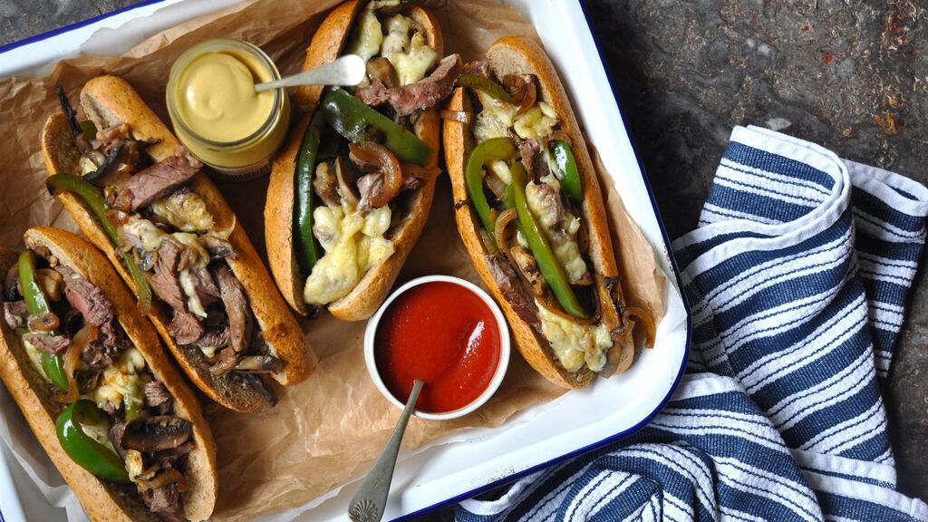 - Preheat the grill to high. Warm the bread rolls slightly in the oven. Thinly slice the steak and combine it with the onion and mushrooms. Layer the cheese slices over the top. Place the roasting tin under the hot grill and cook for five to ten minutes until the cheese is melted and bubbling. Quickly scoop the mix into the warm bread rolls and serve with a little more Worcestershire sauce, tomato ketchup and mustard on the side.