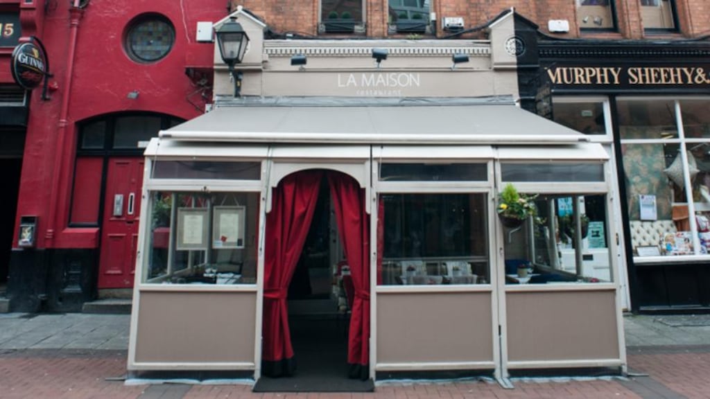 Everything about La Maison is French. Very, very French: the décor, the waiters, the heavy napkins, the tiny tables perfect for an intimate tête-à-tête – and the menu, which is liberally doused in wine, cream and classics such as Escargots Beurre a l’Ail, (snails in garlic butter) €11.50 and Patés Maison (the house patés – a pork rillete, chicken liver parfait, chunky country terrine and pickles), €9.50.