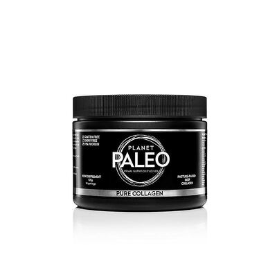 Planet Paleo’s Pure Collagen, for example, says on the front of the shiny black tub that it is “gluten free, dairy free and 91 per cent protein”. The paleo diet involves trying to eat like our ancestors did during the hunter-gatherer era, but without all that messy hunting and gathering. Dairy-free does not mean vegan or vegetarian. This product is a form of gelatin taken from “pasture-raised cows”.