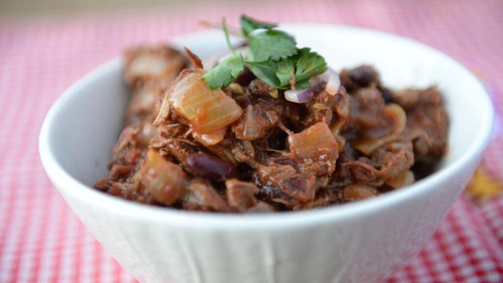 In a heavy saucepan, heat the coconut oil and sweat the onion until soft – about seven minutes. Add the salt and spices, stir for a minute or two, and then add the meat, tomatoes and tamari.