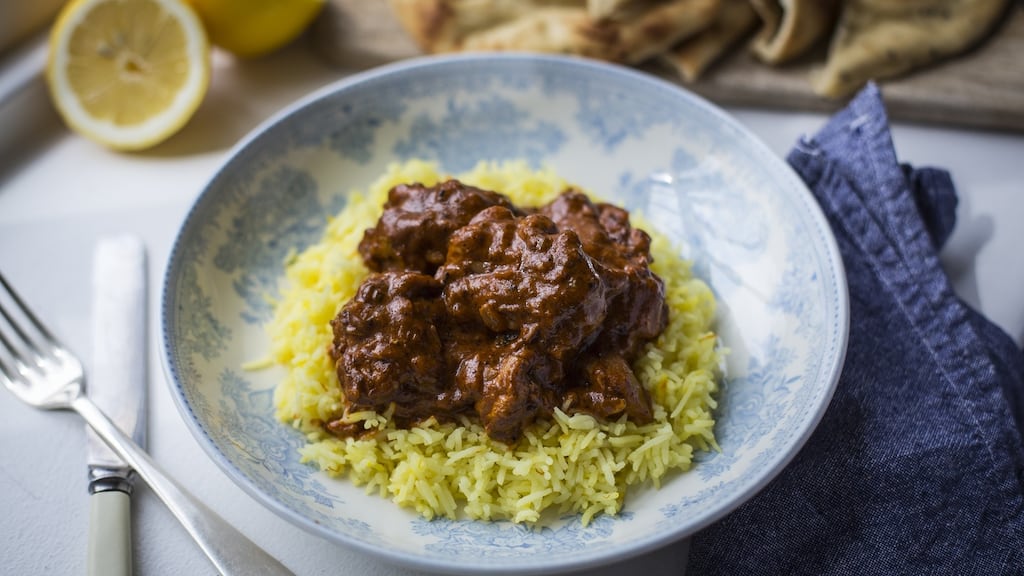 For the sauce, add the butter to the casserole. When it has melted, add the lightly crushed cardamom pods and onions. Cook for eight minutes, until softened and slightly browned. Add the garlic, ginger and chilli and continue to cook for a further two minutes.
