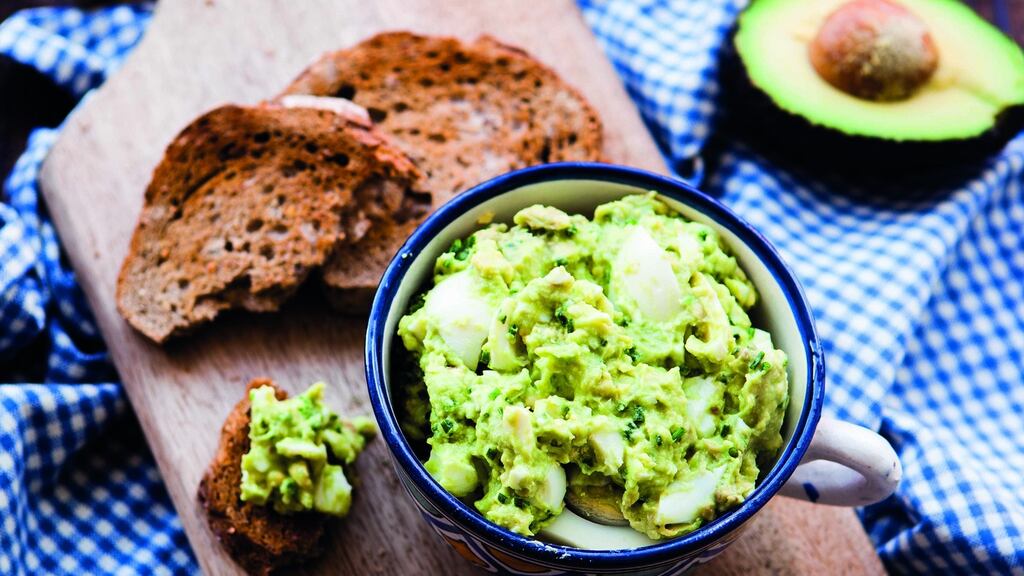 Mash the peeled, boiled egg with the olive oil and some salt and pepper in a small bowl. Add the avocado and mash until it’s quite smooth but still has a slightly chunky texture.
