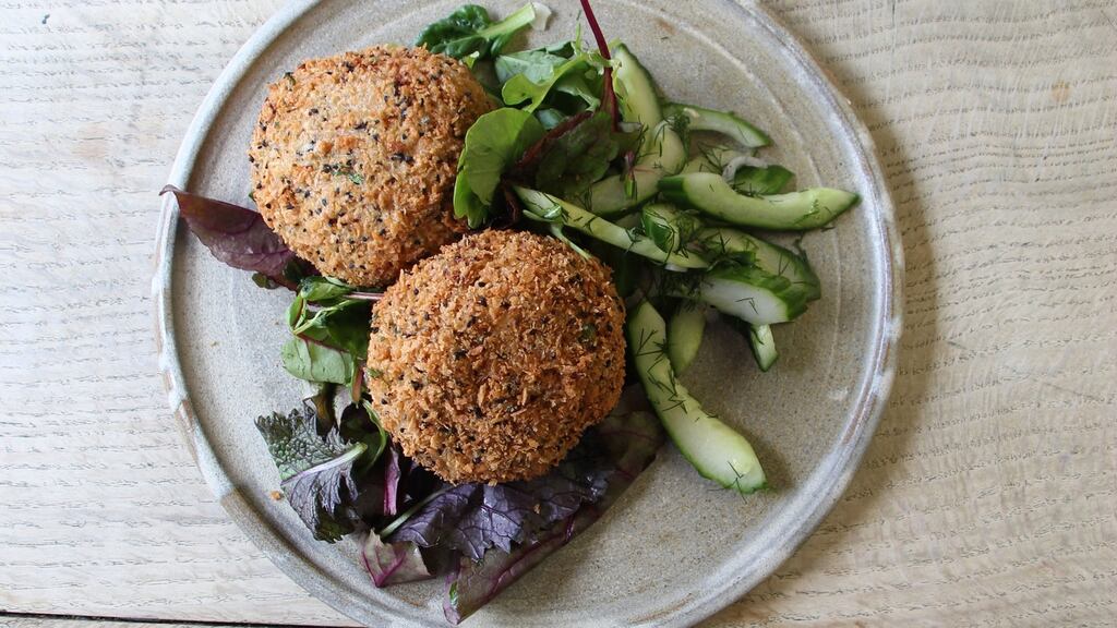 6. Carefully add the cakes two at a time to the hot oil. Fry on one side for three to five minutes until golden brown. Gently flip the cake over using a spatula, and fry for a further three to five minutes.
