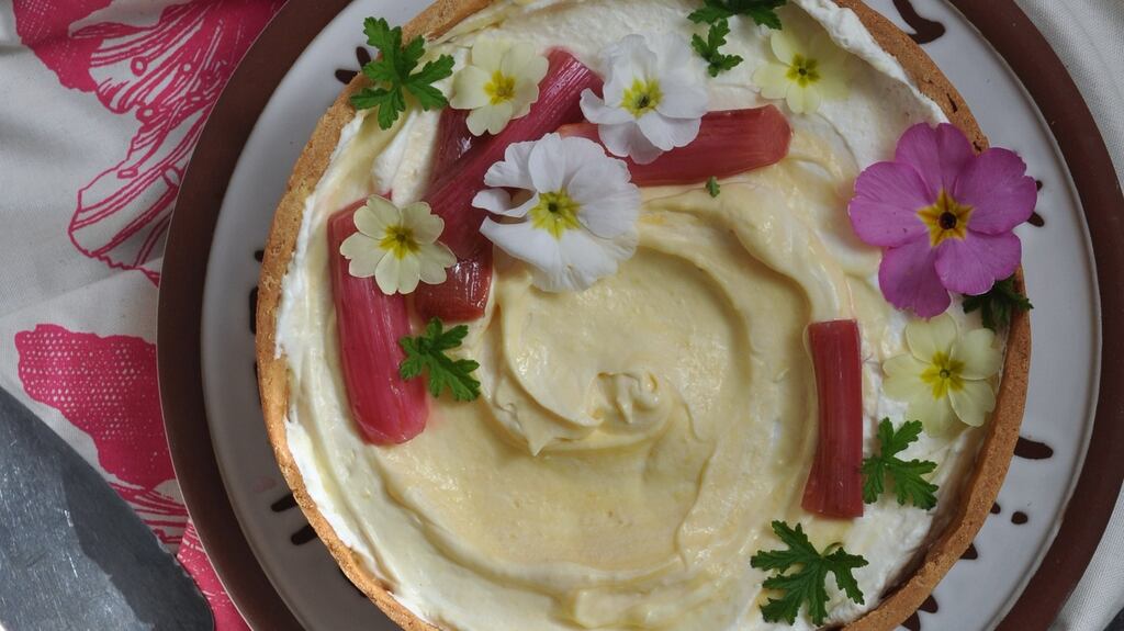 Place the rhubarb pieces into the pastry case and top with the custard cream mix. Serve right away.