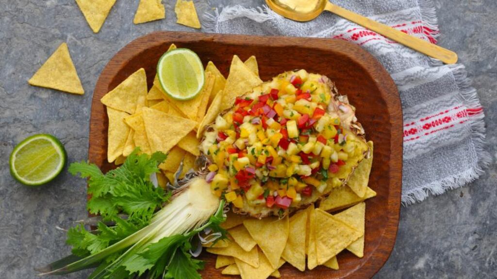 2. Use a small sharp knife to carve the pineapple flesh out.