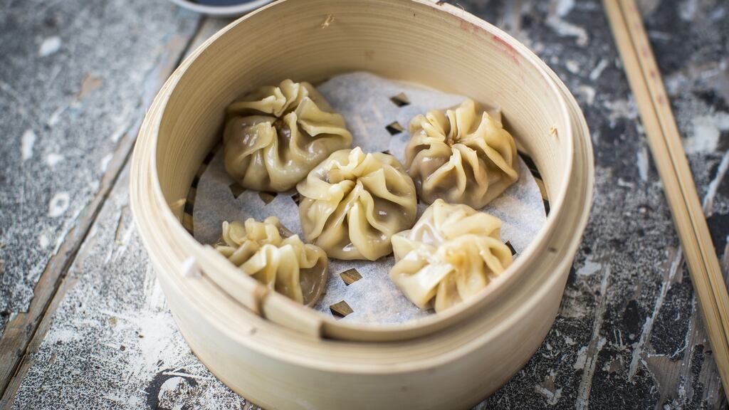 Cover the steamer and place in the wok, and cook for 8-10 minutes until the skins have turned white and almost translucent. Serve straight away with a little soy sauce for dipping.