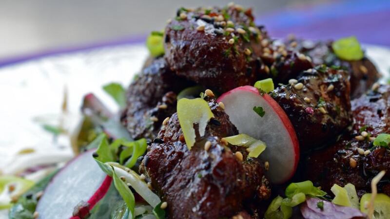 - <ul> <li>good splash olive oil</li> <li>1kg pork shoulder, cut into 2cm chunks</li> <li>1-2 tbsp honey (if you have stem ginger in syrup, you can add a tablespoon instead of the honey)</li> <li>1 tbsp Chinese five spice powder</li> <li>1 tbsp Szechuan peppercorns</li> <li>2 tbsp soy sauce</li> <li>approx 500ml water</li> <li>Another squeeze of honey or maple syrup and soy sauce</li> <li>3 cloves garlic, peeled and crushed</li> <li>To serve Mixed leaves, beansprouts, radishes, spring onions, sprinkle of sesame seeds</li> </ul>