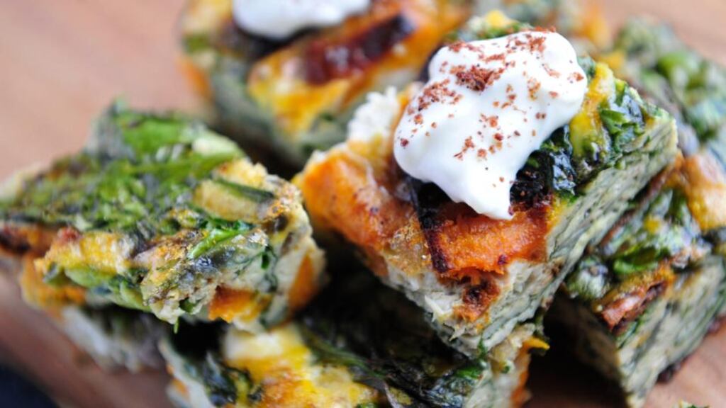 I took another look at his recent book, Fusion, and many dishes are worth a second look, even if its just to inspire some creativity. It was full of combinations I knew I had to try. The first was this very tasty frittata, which we altered considerably, quantity wise, but the really clever thing about this was putting a little blob of Greek yoghurt with a sprinkle of sumac on top. This looked awesome and gave a delicious richness to a dish that can be quite dry, if overcooked. If you don't have sumac, then a little smoked sweet paprika would be fine, or, failing that, some black pepper. The sweet potatoes give it bulk and moistness, ensuring a soft and tasty frittata.