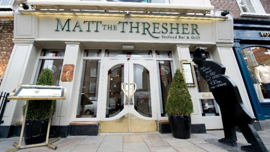 Matt the Thresher is known for its very good chowder (€6.95), but after a conversation about the difference between shrimp and prawns here and on the other side of the pond, my friends opt for a jumbo shrimp and lobster starter with Marie Rose sauce (€13.95). It’s served in a large martini glass, sitting on shredded lettuce. When the guffawing stops over the size of the “jumbo” shrimp, we all agree that they make up in flavour what they lack in size. The lobster, too, is sweet and tender although the lettuce is a little soggy. A kilner jar of potted smoked mackerel (€8.95) is pungent and strongly smoked and is great smeared on toasted sun-dried tomato bread with a dollop of horseradish rémoulade.