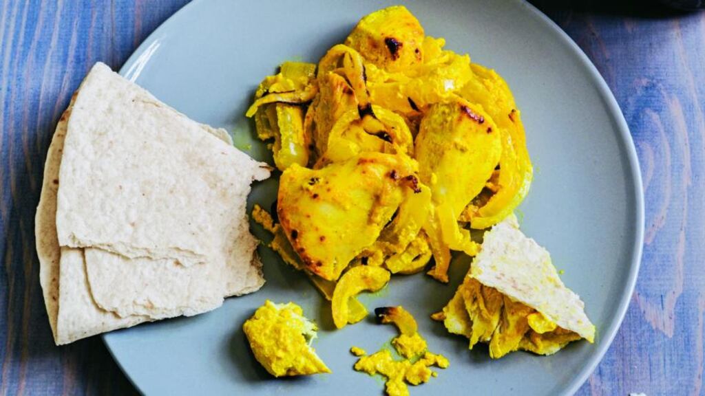 Joojeh kebab is the most famous chicken dish in Iran. Usually made using poussin, grilled over a coal barbecue, it remains succulent and tender and the lemon and saffron marinade makes for a delicious marriage of flavours. But we don’t all have barbecues, so I came up with this recipe and I think it’s the next best thing to grilling/barbecuing.