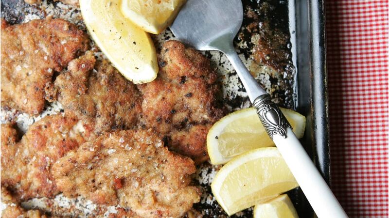 I SOMETIMES THINK that the easiest way to a man’s heart is to dip a hunk of chicken or pork into some breadcrumbs and fry it until it’s crisp. I am sorry if that sounds sexist or anything as offensive, and I appreciate that I’m generalising, but I’ve never met a bloke who doesn’t like fried, crisp, well-seasoned schnitzel (unless they’re vegetarian).