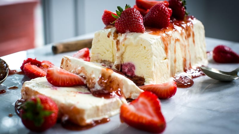 Semifreddo is the ideal make-ahead dessert. The basic recipe here can be garnished with different toppings of your choice, but is delicious with the summer’s freshest strawberries.
