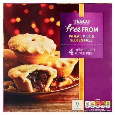 So this sweet syrup is in most of the mince pies I found on sale, except for those in the Tesco Free From range. These have their own foibles including an allergy warning in pink that they may contain peanuts. This means they have been made in a factory that also handles products with nuts in them.