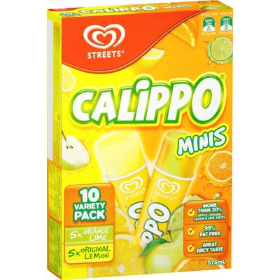 Other similar lollies are a lot less appealing. The Calippo Mini Orange Popsicle, which is made by behemoth Unilever, has just 20 per cent orange juice and that is from concentrate. It also has three types of sugar.