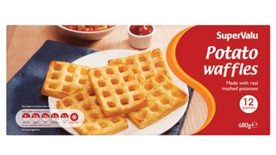 SuperValu’s own-brand waffles boast that they are made with “real mashed potatoes” though, to be fair, so are the others. The difference here is in the quantity. They comprise: potatoes (92 per cent), sunflower oil (4 per cent), potato flakes, salt, dextrose, hydroxyl propyl methyl cellulose and pepper extract. For a processed food, they are not bad.