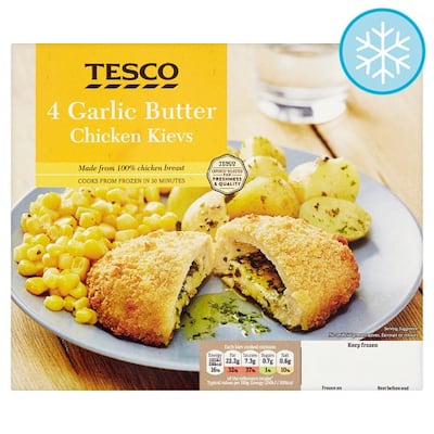 Another Tesco product, Garlic Butter Breaded Chicken Kiev, is a little more expensive, but for that you get a lot more chicken and lot fewer ingredients. The chicken used is breast and it makes up 54 per cent of the dish. The other ingredients include: breadcrumbs, butter, water, wheat flour, rapeseed oil, garlic purée, parsley, salt and black pepper.