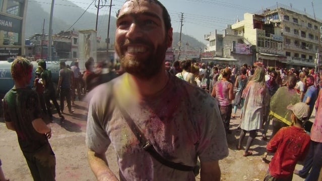 Our yoga-weary bodies were thankful of a day off this morning as we rolled out of bed and to the local chai stall. We quickly noticed the energy in a usually sleepy and calm town. Two minutes later, we received our wake-up call, not with the desired sweet tea, but with a bucket of water thrown over us from the rooftops of flats above. The kids were very accurate, having had some practice the night before, and all I could do was run for shelter while shaking my fist in an international gesture of anger, more aimed at myself than them for my naivety and lack of awareness.