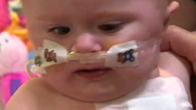 After nine months in hospital, a baby girl – born with her heart outside her chest – has been able to go home, albeit for a short visit.