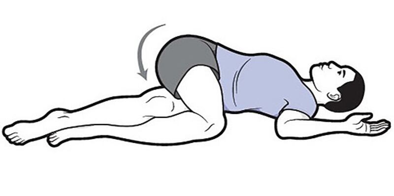Supine spinal twist Lie on your back, hug your knees into your chest and take a few breaths. Then extend your arms out in opposite directions, making a T shape. As you exhale, lower your knees to the right, keeping both shoulder blades on the floor. You can deepen the twist by looking over your left shoulder.