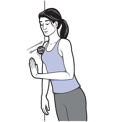 Pectoral roll Stand facing a wall and place the ball under your collarbone at the sternum. Lean against the wall and slowly roll the ball back and forth, side to side, along the valley below your clavicle several times.