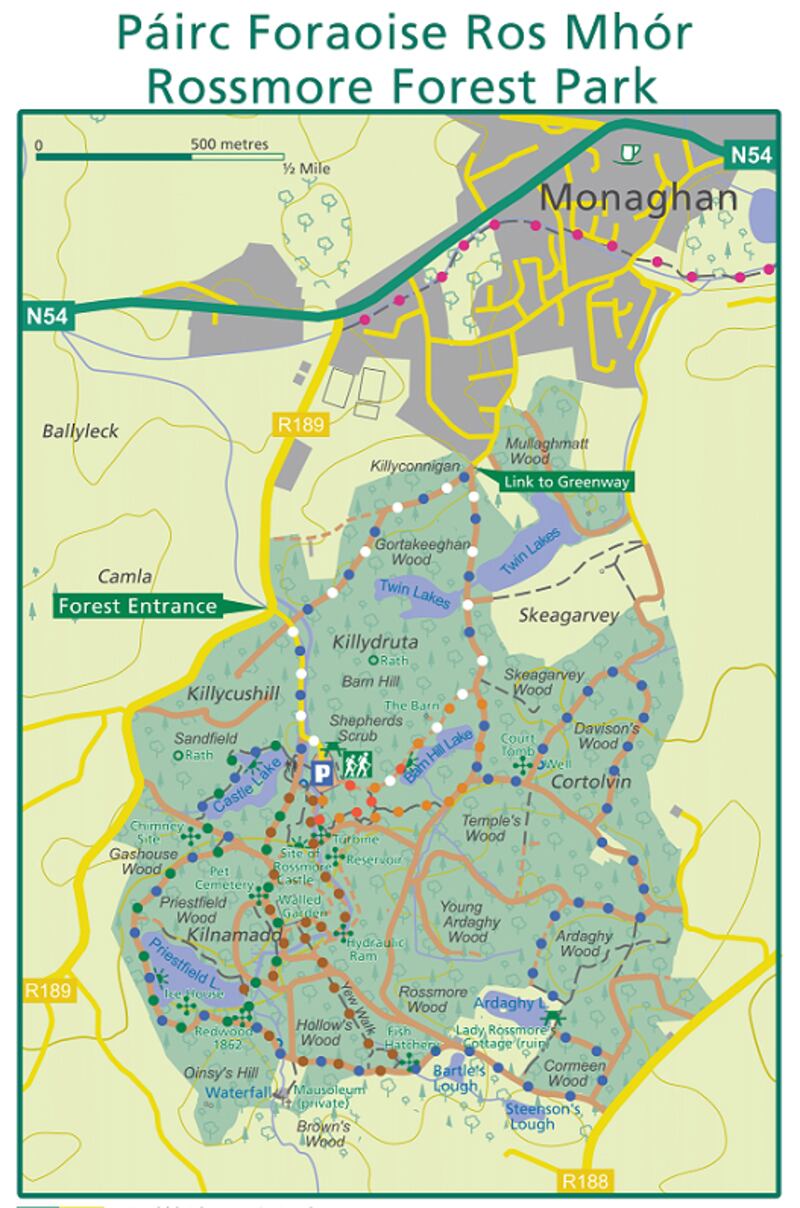 Access: Car parking. Google Map "Rossmore Forest Park".