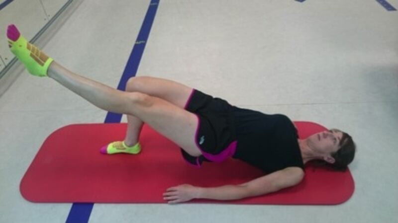 If you wish to progress from the gluts bridge you can add in a single leg lift. Keep your hips level and lift one leg off the mat, straighten the leg out but keep the knees in the same line. Hold for five secs and see if you can switch and lift the opposite leg up. This is a great exercise to increase pelvic control when running particularly if you feel loose in the hips when you run.