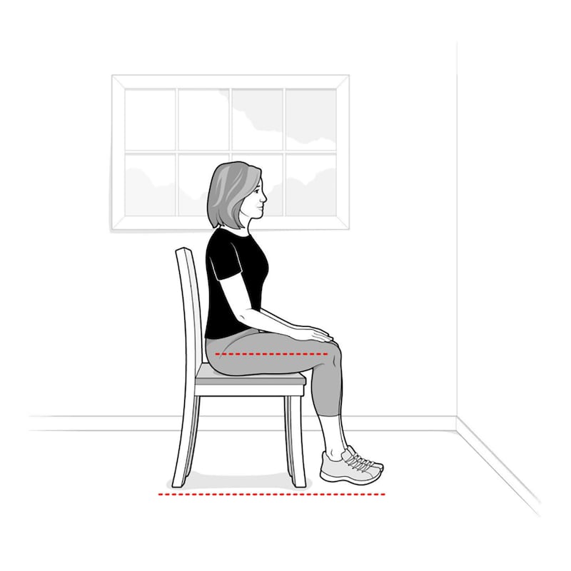 Step 1 Find a chair or box high enough that, when you sit on it, your thighs are parallel with the ground. Keep your core tense and your chest up, with your back straight.