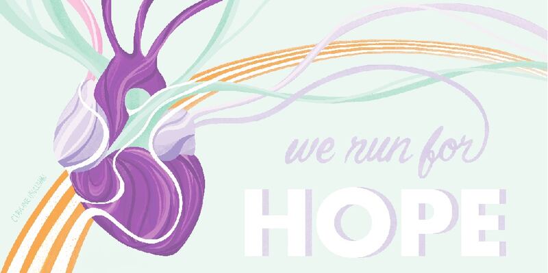 Earlier this year VHI teamed Tuohy up with artist Claudine O’Sullivan and commissioned a piece of artwork based on Tuohy’s decision to take part in the race. O’Sullivan’s painting depicts a running track leading from a heart to the words “we run for hope”.