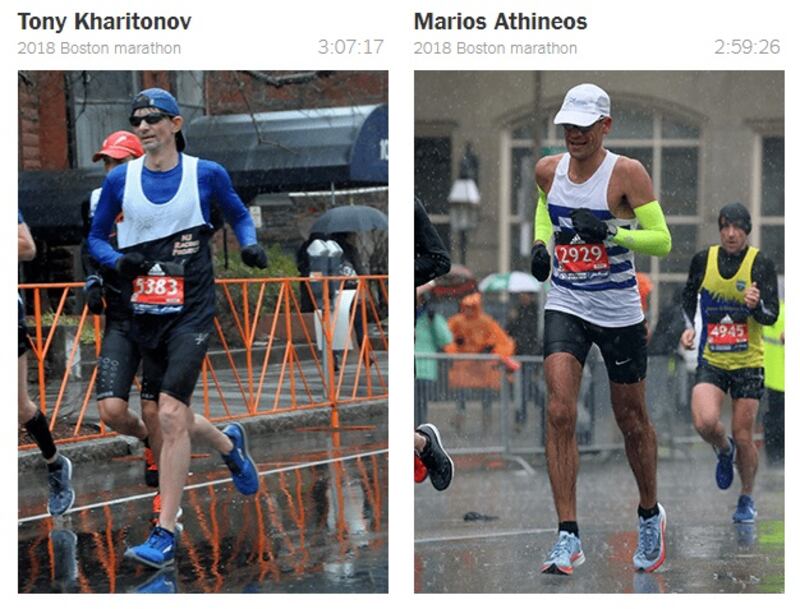 Tony Kharitonov and Marios Athineos don't know each other – in fact, they live on opposite coasts of the US. But they have something in common: They both failed to get the time they wanted in the 2017 Boston Marathon. But they failed together, just nine seconds apart (3:02:04 and 3:02:13, respectively).