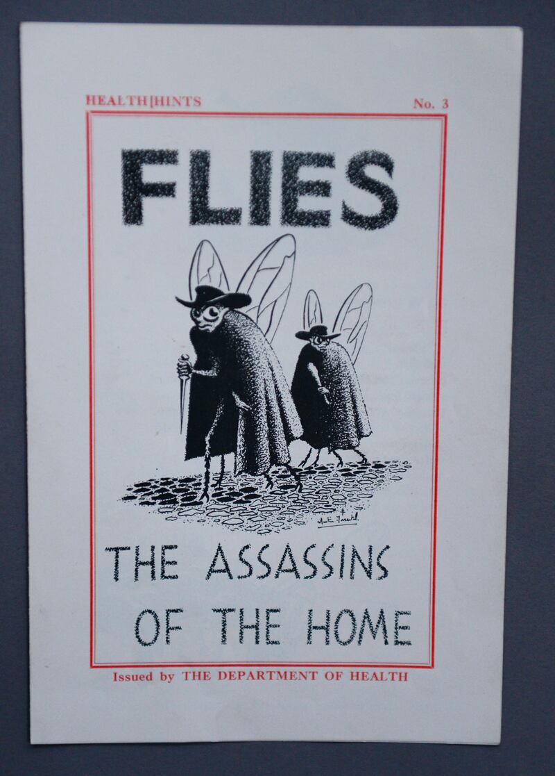 First, prevent flies from breeding by cleaning up the dirt and refuse lying about; if you can’t get rid of it any other way you should burn it . . . Secondly, kill the flies with the best weapon we have – D.D.T or a similar powder. You may obtain a supply of D.D.T preparations for household use free of cost at your local dispensary. Scatter it inside and outside the house. The more flies you kill, the less chance they have of breeding.
