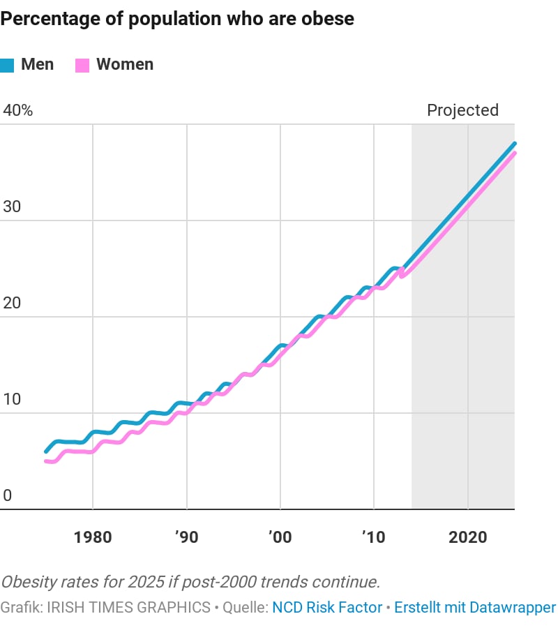 Ireland has one of the highest rates of obesity in Europe, with one in four adults now classed as obese and one in four children already overweight.
