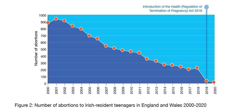 It’s not the case, as some might suppose, that more pregnant teenagers were opting for abortions because there has been a sharp downward trend there too. In 2018, 218 Irish-resident teenagers used abortion services in England and Wales, compared with 884 in 2000. That is a decrease of 75 per cent. (An age breakdown is not available of the 6,577 women who had abortions in the Republic in 2019, the first year after the introduction of the latest abortion legislation here.)
