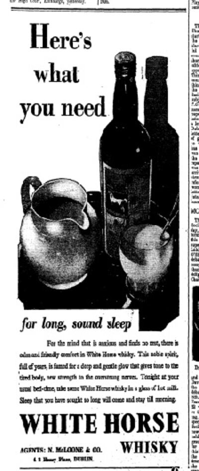 Dr Cassells Pillls (for indigestion and Nervous Insomnia), Halls Tonic, Virol and Milk, Glax-Ovo vitamins were just some of the many other brands looking to put Irish insomniacs to sleep.