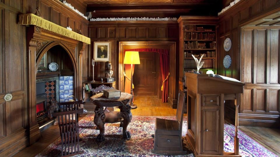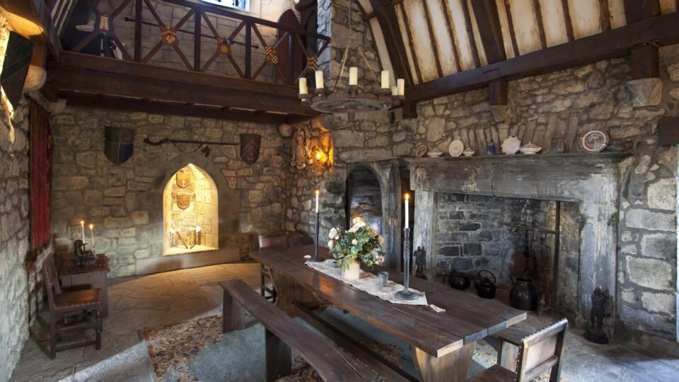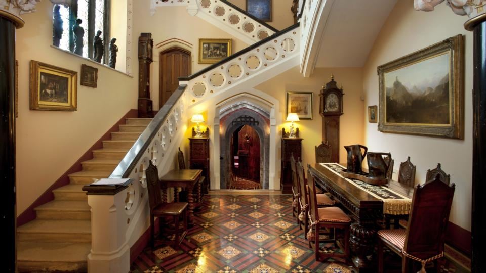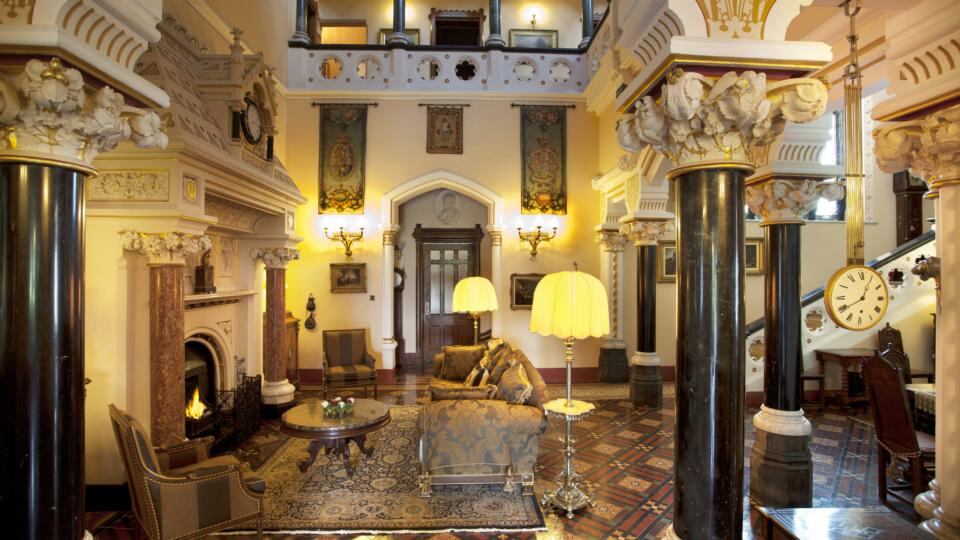 The main house was designed by architect George Ashlin, whose ecclesiastical influences are evident throughout. It features a Great Hall with a 40ft-high vaulted timber ceiling, a polished granite-topped staircase and elaborate reception rooms with Irish marble mantelpieces and pine floors imported from the US.