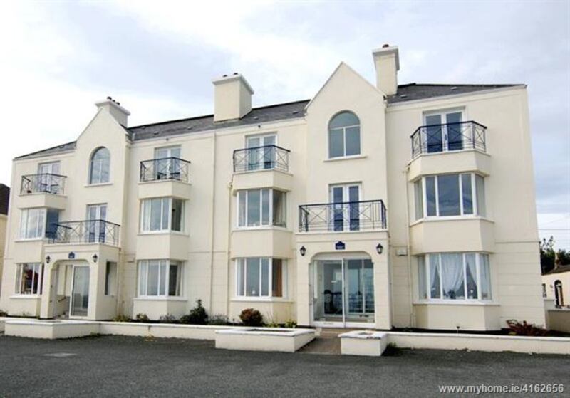 Two-bedroom apartment overlooking Bray esplanade and prom, close to amenities. Could do with refurbishment. One of a small number of apartments in a mature development. Agent: Dooley Auctioneers. More details here