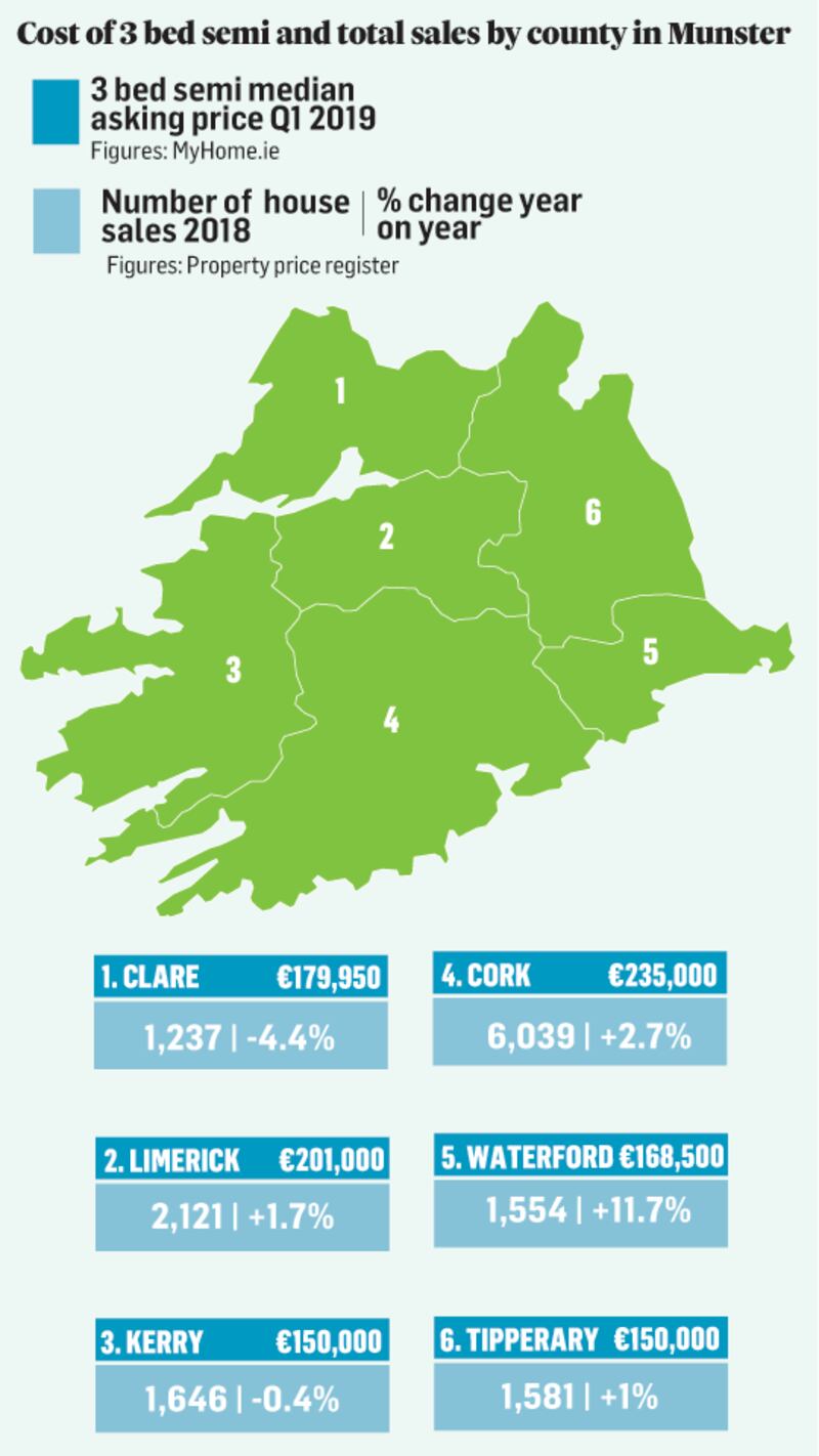 The figures reflect the ongoing demand for and pressure on housing around the capital according to MyHome managing director Angela Keegan. "Internationally we are seeing a move towards increased urbanisation and in Ireland Dublin is very much the focus point for that. This is reflected in the increase in the volume of sales in commuter belt counties around Dublin and indeed in most other Leinster counties – they only fell in three – as well as increases in the commuter belts of other cities.