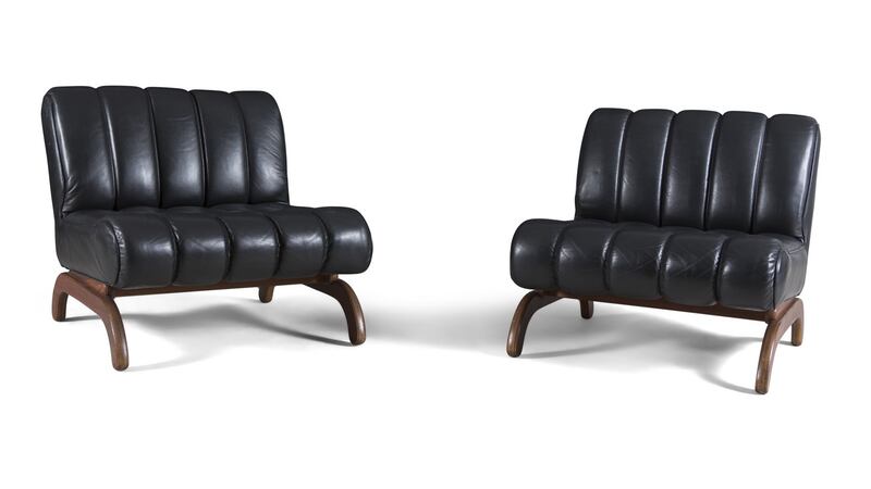 The top lot among the antique furniture is Lot 278 (avove), a Regency mahogany breakfront secrétaire bookcase (€4,000-€6,000); Lot 280 is an Art Deco burr walnut sideboard, circa 1930 (€500-€800); and, among later 20th century pieces, Lot 252, is a 1960s three-piece "Independence" sofa suite by Karl Wittmann, the Austrian furniture designer comprising two easy chairs and a sofa, upholstered in black leather, each with panelled seats and raised on timber legs, the sofa converting to a bed €3,000-€5,000.