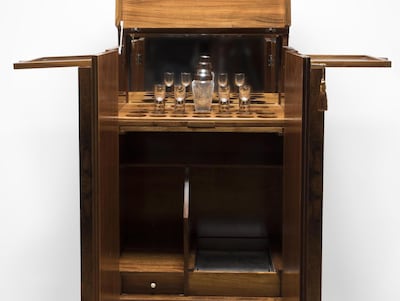 Considering many of the cabinets stem from the time of prohibition in the US, it is no wonder that these objects appear discreet when closed, but when opened up have playful ingenious designs and were risqué for their period. They pay homage to post-first World War hedonism, when Edwardian corsets were cast aside for flapper dresses, and people quaffed alcohol while dancing the Charleston in underground speakeasies – as chronicled in F Scott Fitzgerald’s classic book of the era, The Great Gatsby.