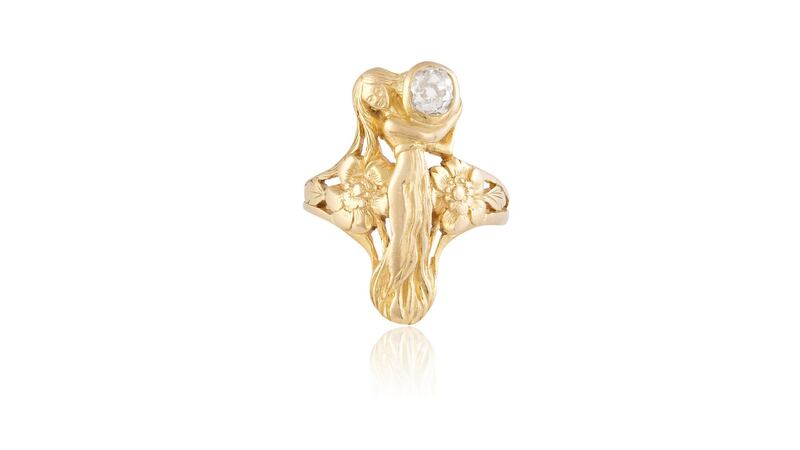 Bright and playful animal pieces also feature: lot 73 is a turquoise, coral and diamond butterfly brooch (€1,200-€1,800) and a diamond and carved amethyst ring with matching earrings in the shape of a duck is lots of fun for anyone in search of a chunky colourful ring and earring set (lot 70 - €4,500-€5,500).