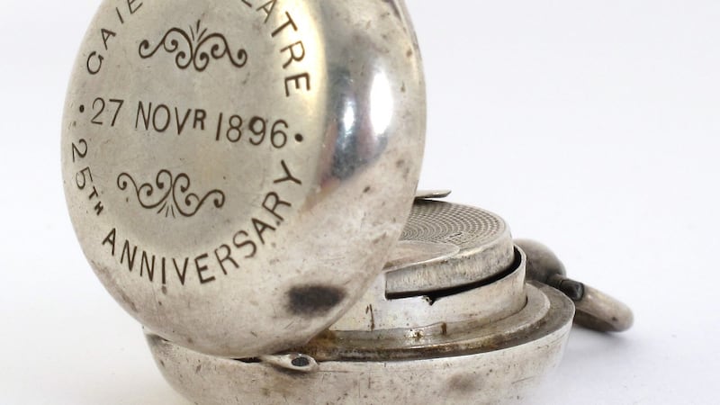 Also in theatrical circles is a silver sovereign presentation case dated November 27th, 1896, which was presented to a member of the Gaiety theatre staff from the owner at the time Michael Gunn, to celebrate the theatres' 25th anniversary.