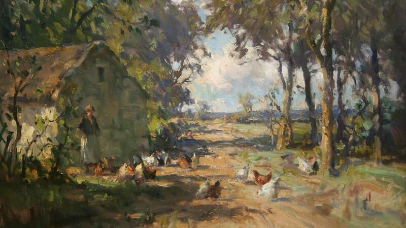 A more traditional depiction of rural Ireland is Frank McKelvey's Woman Feeding Chickens , dating from the 1920s, and estimated at €15,000-€20,000. The catalogue is online at deveres.ie. –MP
