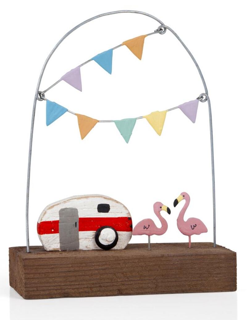 Camp up your summer decor with this pair of caravanning flamingos, 10cm by 15cm, one of many decorative touches for sale at Moss Cottage (01-2157696 moss.ie) on the Main Street in Dundrum, Dublin 14. Normally €7.95 Irish Times readers can buy it for €5. Also on offer is their flamingo and ice cream cone garland, reduced 37 per cent from €15.95 to €10.