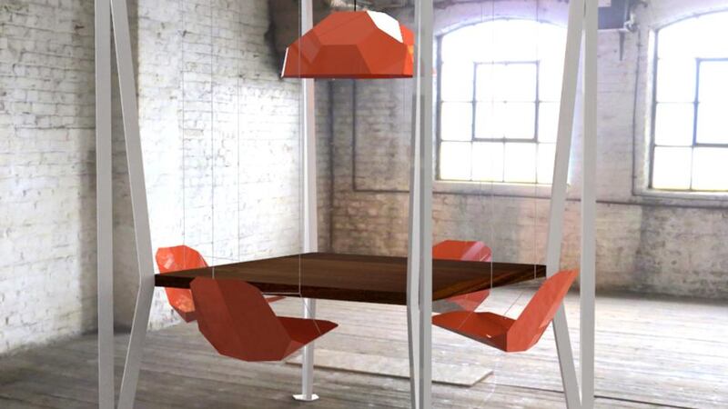 Christopher Duffy’s Swing set, is a design that sees hanging chairs suspended from a four-poster frame around a table top. This playful, if eye-wateringly expensive design will make mealtimes or work meetings a barrel of laughs. Prices start from about €5,686 (£4,500) for the four-seat size (0044-208594 3395 duffylondon.com)