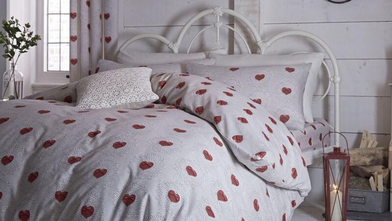 Inject a little boudoir romance into your bedroom with this double duvet cover, 200cm by 200cm, and two pillowcase cotton-polyester set. Doily Hearts by Catherine Lansfield is a print that gives the impression it is embroidered. It costs €29.95. Present today's column and you can buy this set or any other bedroom linen, not reduced in the sale, less 10 per cent at any branch of Harvey Norman. This is an in-store offer only and ends Sunday, February 15th.