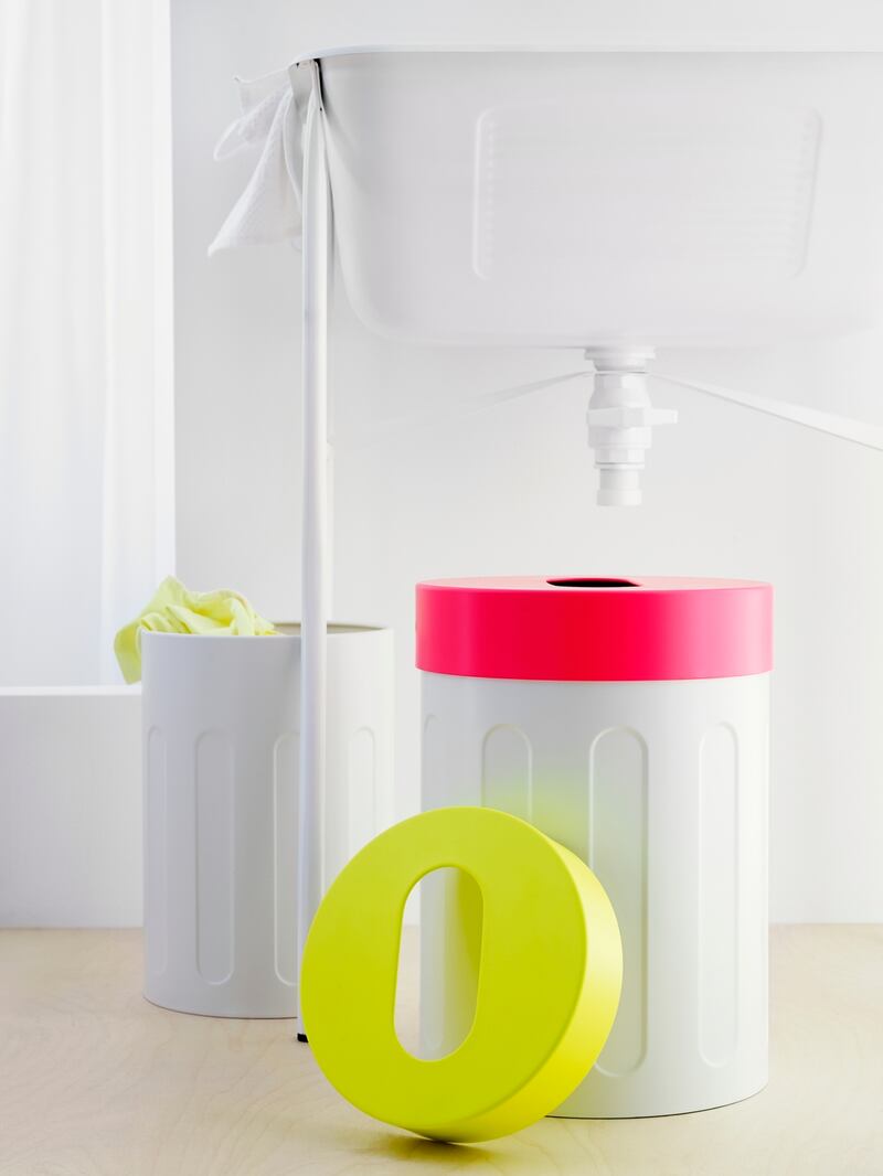 Ikea’s (ikea.ie) new powder-coated Sprutt collection will add pep to most spaces. There is clever cabinetry for trinkets or the bathroom, linen ladders for towels that come with storage baskets, so you can squeeze quite a bit into a small space, cool coloured clothes hangers and multitasking storage bin stools, pictured, which cost just €29 for a set of two and come in assorted colours.