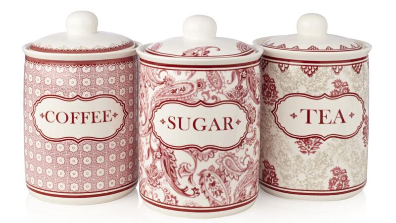 Tea? Sugar? Me? Add some colour to your countertop storage with this coffee and sugar caddy set by Delphi, each 17cm by 11cm tall, reduced from €49.95 to €20 to clear at all Carrig Donn (carraigdonn.com) shops including the new one at The Marshes, Dundalk.