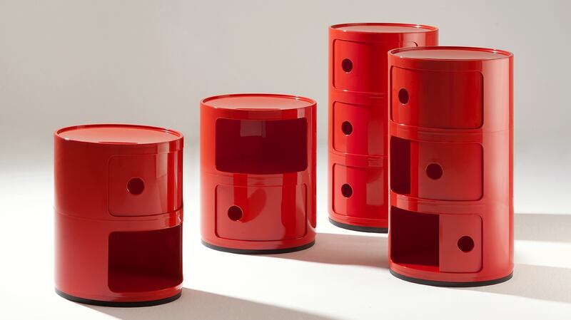 In 1967, she designed the visually striking Componibili storage modules which are still in production by Kartell. Made from ABS, a strong glossy plastic – a material widely used by Italian designers in the 1960s – her sophisticated yet brilliantly simple design captured a Pop art aesthetic and lent plastic, a low status material, a higher value.