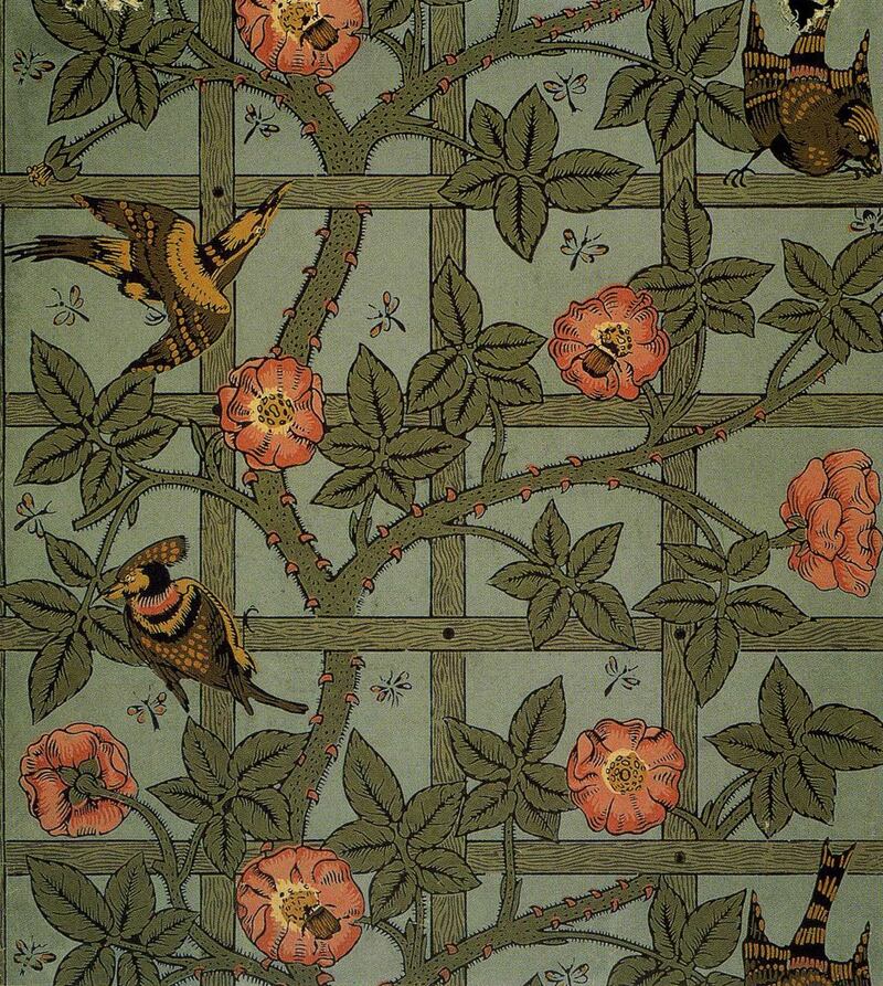 The basic tenets of the still influential movement was the rejection of the industrialisation of manufacture – in all things from furniture to fabric – in favour of the handmade. He designed more than 50 wallpaper patterns starting with Trellis in 1862.
